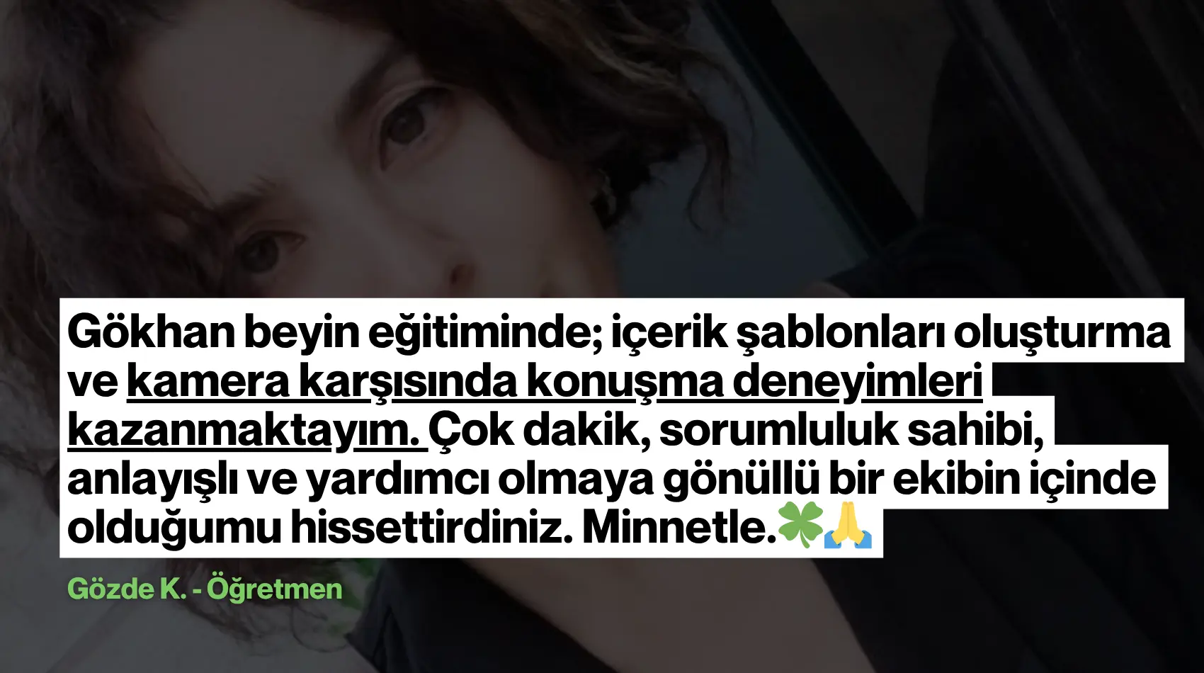 Sadece kamera karşısına geçerek, çıktığım reklamlardan ve ürettiğim içeriklerden inanılmaz sonuçlar almaya başladım. Eğitimlerimi kolaylıkla satmaya ve yüksek fiyatlı müşteriler edinmeye başladım.